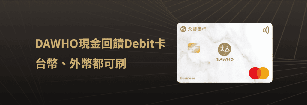 | DAWHO 現金回饋Debit 卡 | ・國內一般消費 0.6% 無上限 ・指定外幣消費 2.5% 無上限 ・新戶達大戶以上等級,最高享10%回饋 |
