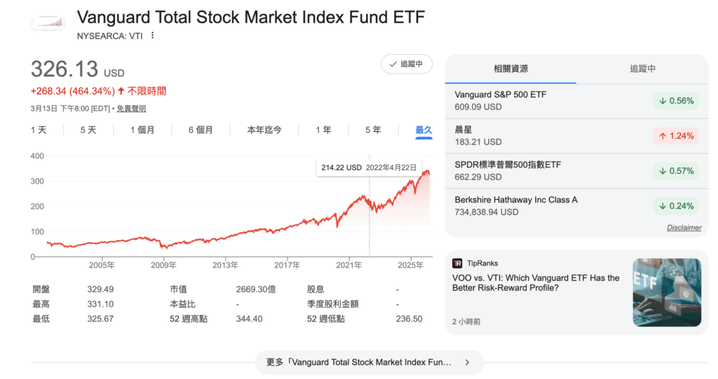 我自己買的美股叫做VTI,他是追蹤美國約3500家公司指數的ETF,所以會跟著美國3500家大公司的績效走。